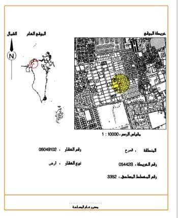 Residential Land for Sale in ِAl Markh with a classification of RA (Private Residential Area -A). The Land size is 329.8 SQM, priced at 32.50BHD per SQFT , with a total price of 115,500.000BHD