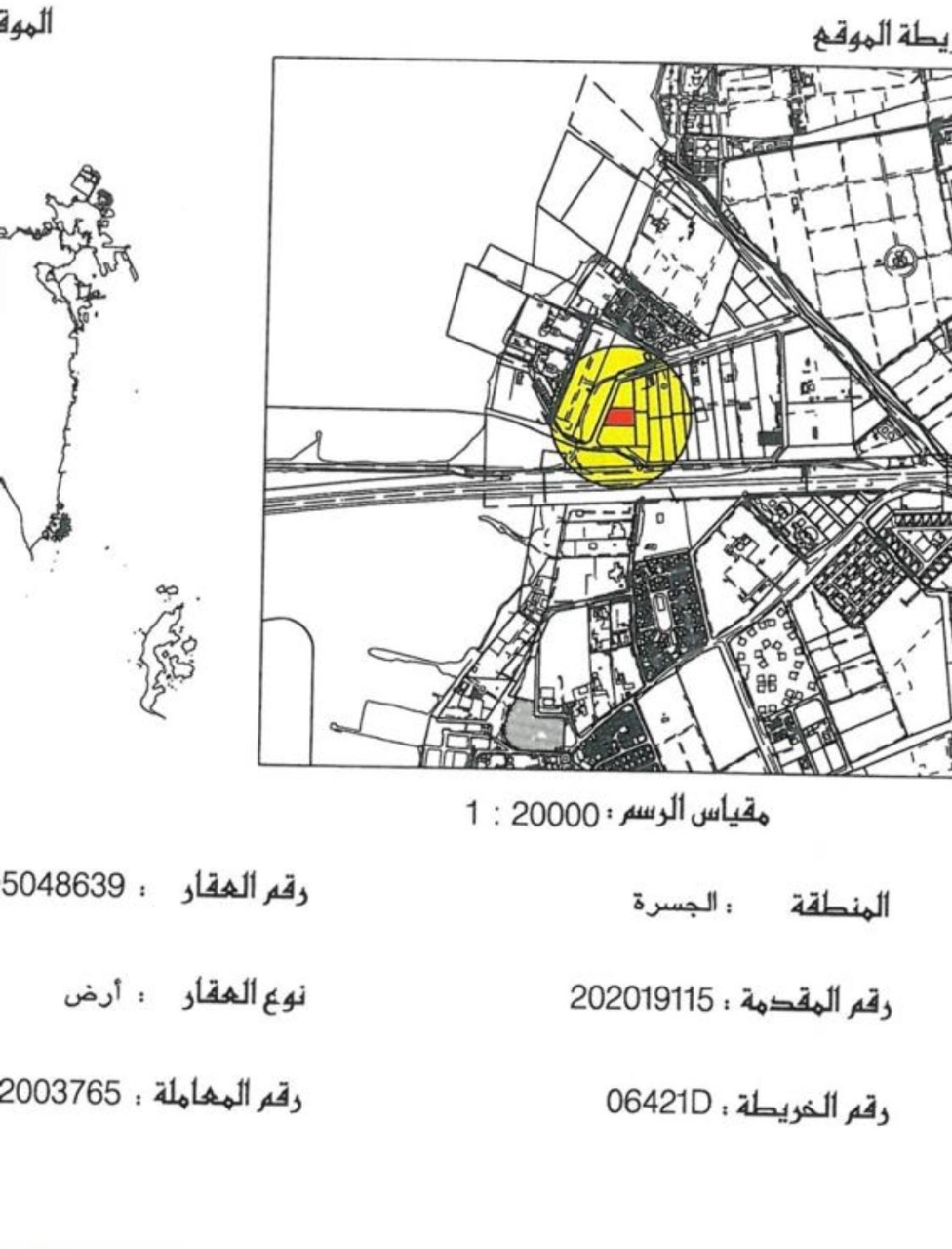 Residential Land for Sale in Al Jasrah with a classification of RG (Garden Residential Area). The Land size is 4110.9 SQM, priced at 16.00BHD per SQFT , with a total price of 707,995.680BHD