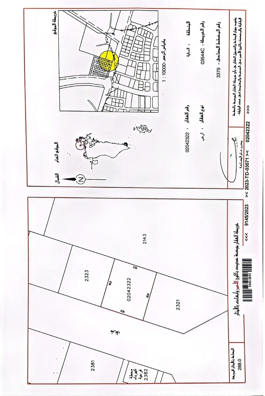 Residential Land for Sale in Al Sayh with a classification of RA (Private Residential Area -A). The Land size is 288 SQM, priced at 25.00BHD per SQFT , with a total price of 77,500.750BHD