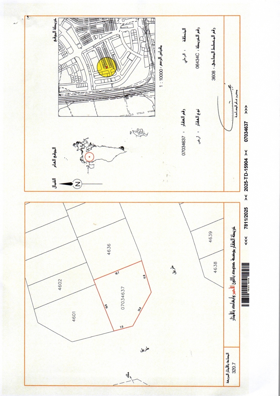 Residential Land for Sale in Alramli with a classification of RHA (Connected Residential Area – A) located on One Road. The Land size is 320.70 SQM