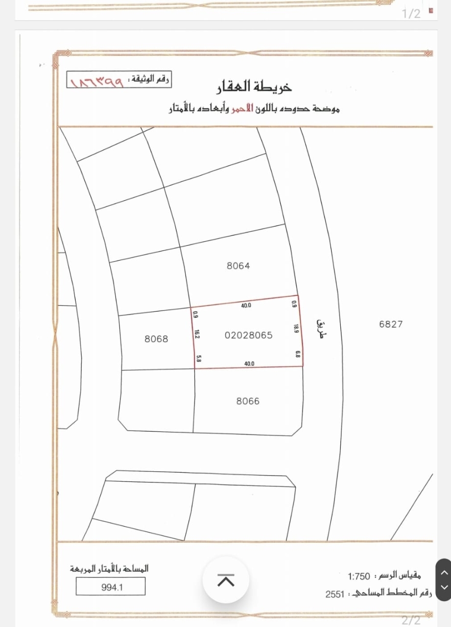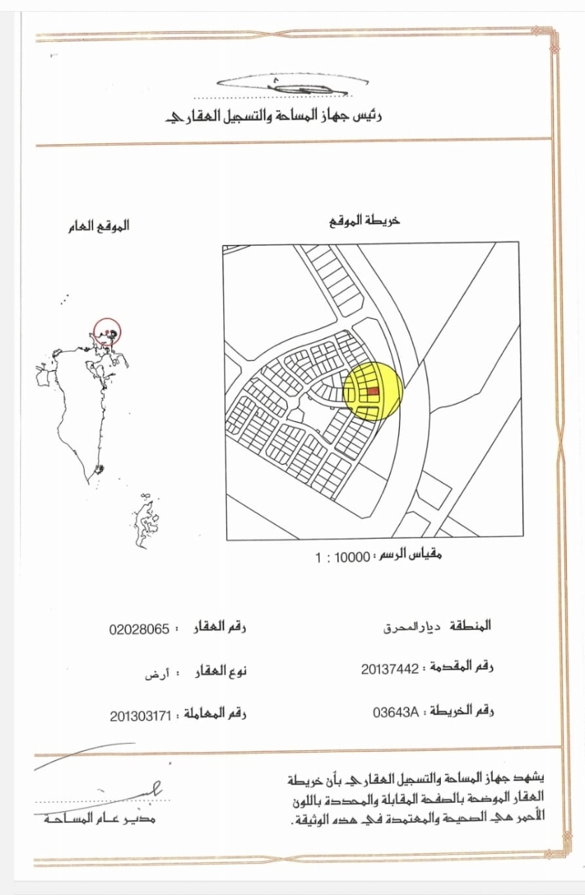 Residential Land for Sale in Diyar Almuharraq with a classification of RA (Private Residential Area -A). The Land size is 994.1 SQM, priced at 24 BHD per SQFT , with a total price of 256,811.760 BHD