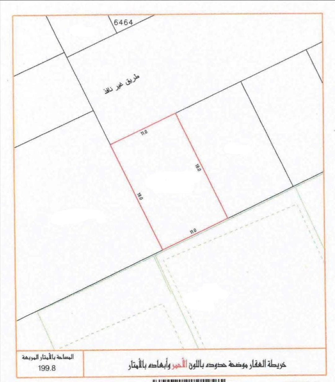 Residential Land for Sale in Dumistan with a classification of RHA (Connected Residential Area – A). The Land size is 199.8 SQM, priced at 30.22BHD per SQFT , with a total price of 64,999.095BHD