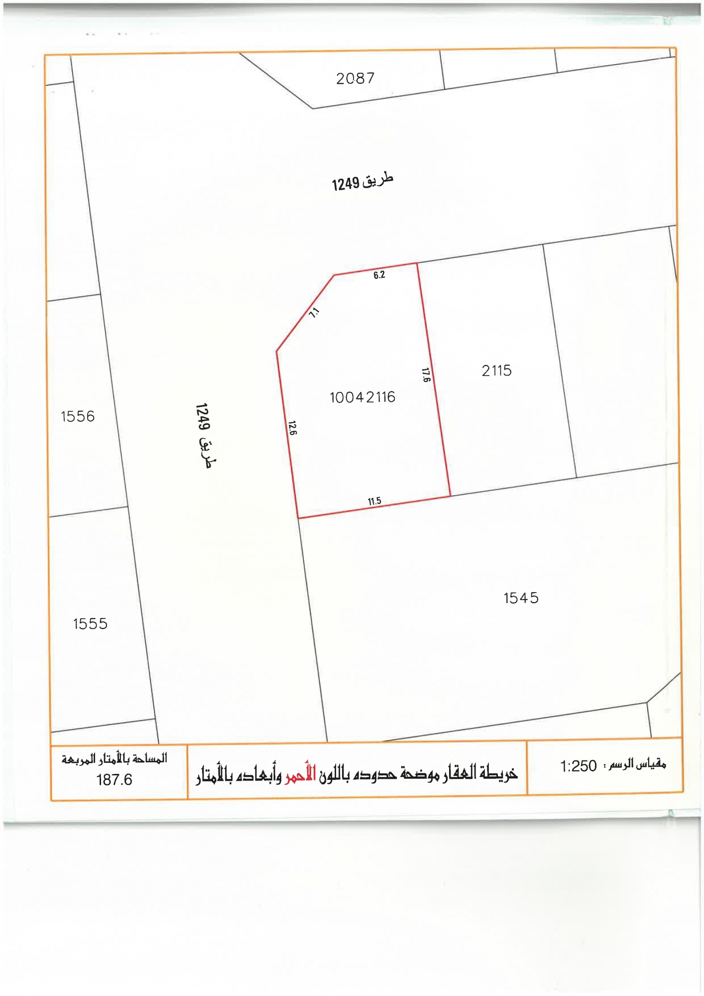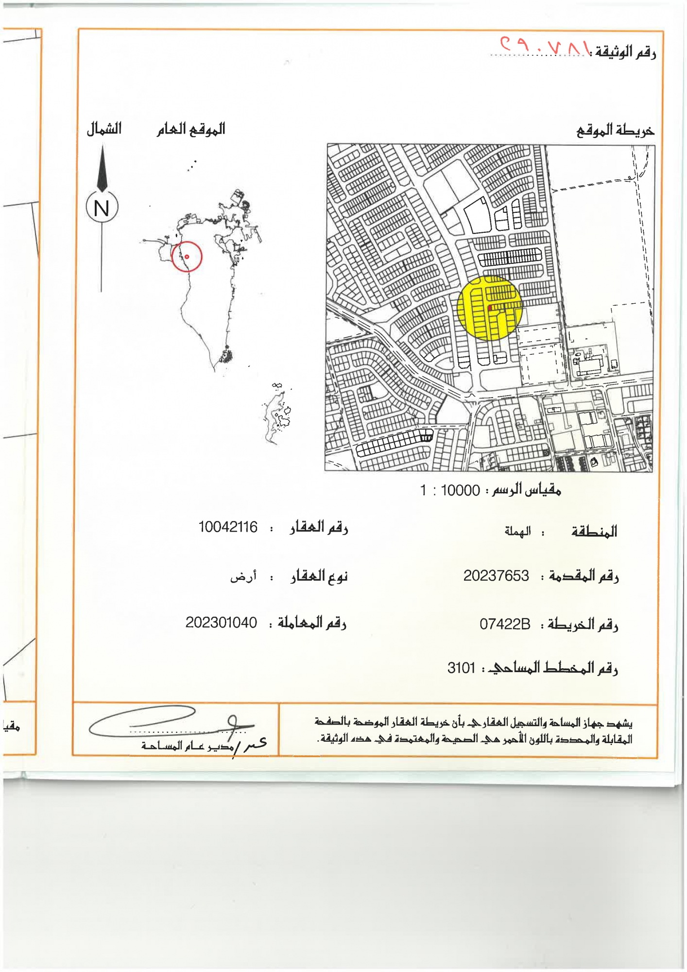 Residential Land for Sale in Hamalah with a classification of RHA (Connected Residential Area – A) located on One Road. The Land size is 187.60 SQM, priced at 30.00BHD per SQFT , with a total price of 60,579.900BHD