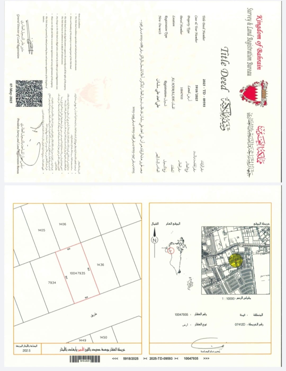 Residential Land for Sale in Hamalah with a classification of RHA (Connected Residential Area – A). The Land size is 202.5 SQM, priced at 28.00BHD per SQFT , with a total price of 61,031.880BHD