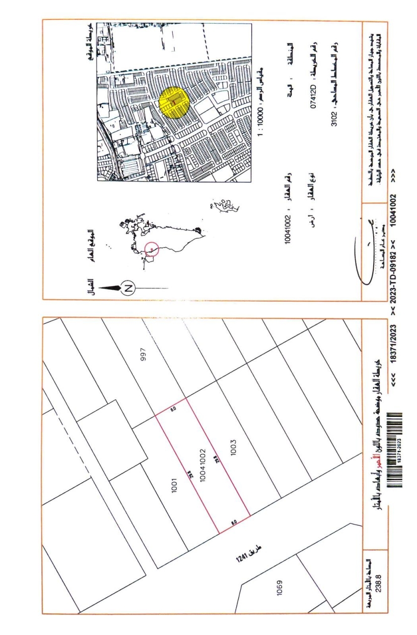 Residential Land for Sale in Hamalah with a classification of RHA (Connected Residential Area – A). The Land size is 238.8 SQM, priced at 25.00BHD per SQFT , with a total price of 64,261.000BHD