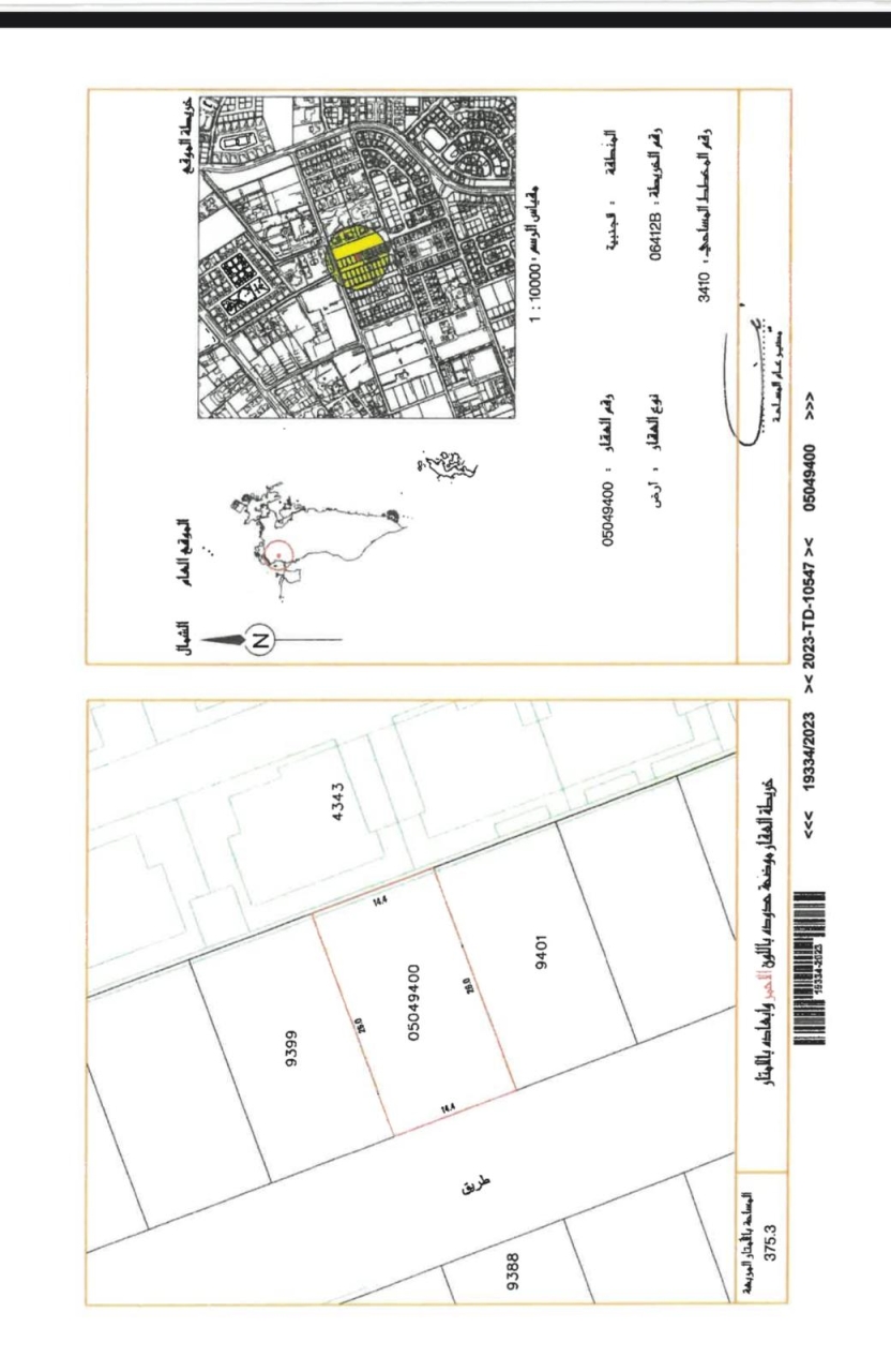 Residential Land for Sale in Janabiya with a classification of RA (Private Residential Area -A). The Land size is 375.3 SQM, priced at 33.00BHD per SQFT , with a total price of 133,311.090BHD