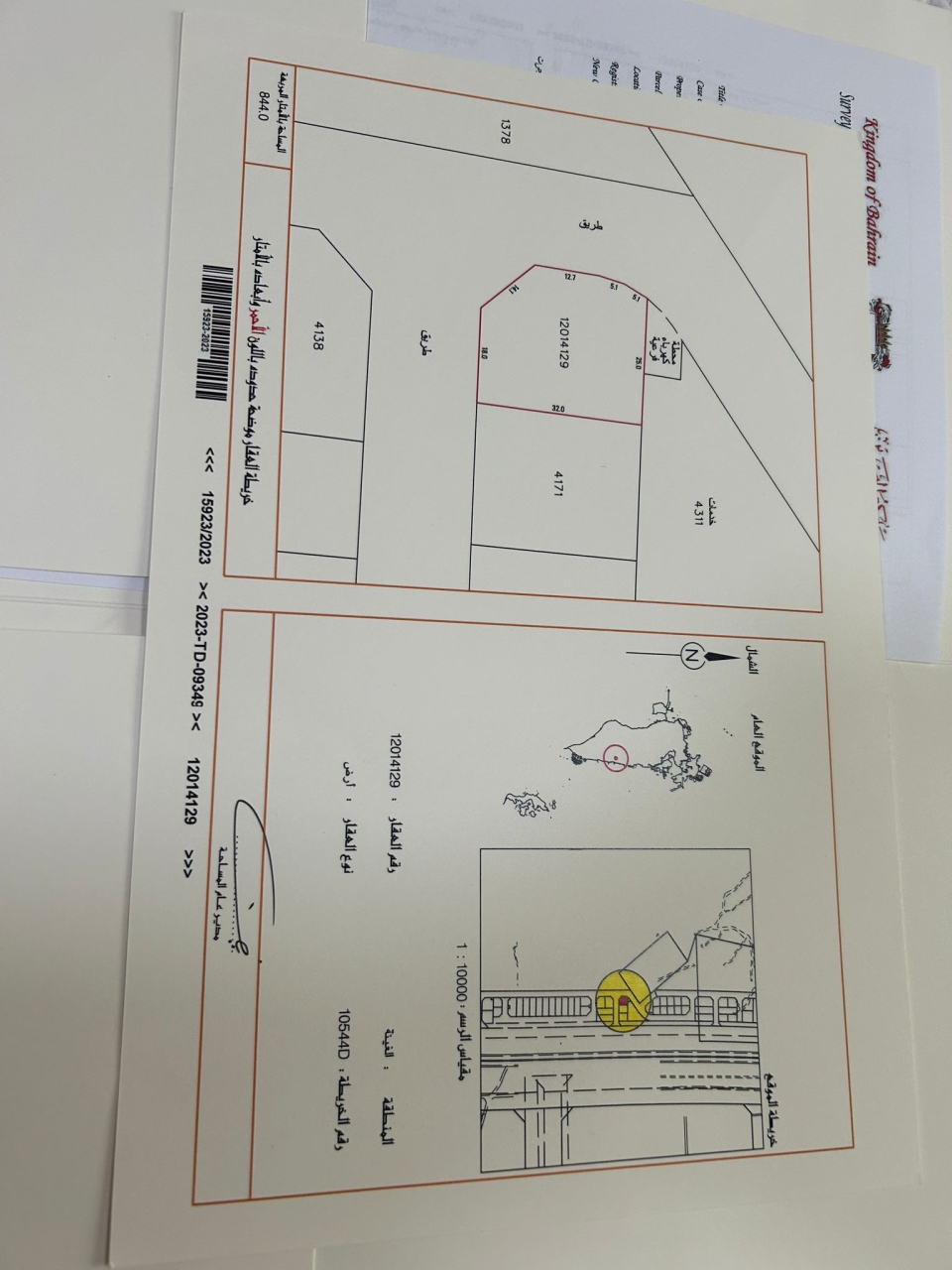 Commercial Land for Sale in Jaw with a classification of IS (Implementation Stage) located on Two Roads (Corner). The Land size is 844 SQM, priced at 18.80BHD per SQFT , with a total price of 170,794.616BHD