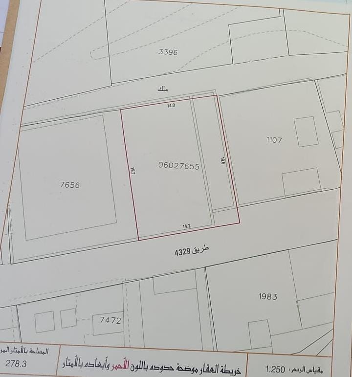 Residential Land for Sale in Nuwaidrat with a classification of RHB (Connected Residential Area – B ). The Land size is 278.3 SQM, priced at 28.40BHD per SQFT , with a total price of 85,000.000BHD