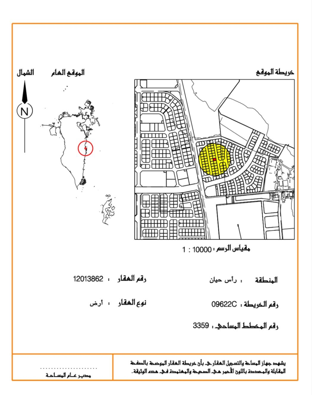 Residential Land for Sale in Ras Hayaan with a classification of RA (Private Residential Area -A). The Land size is 308.2 SQM, priced at 21.70BHD per SQFT , with a total price of 72,000.000BHD