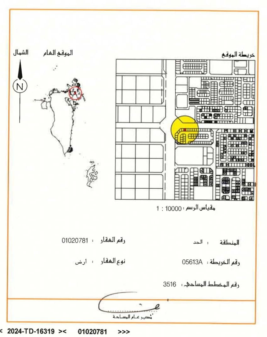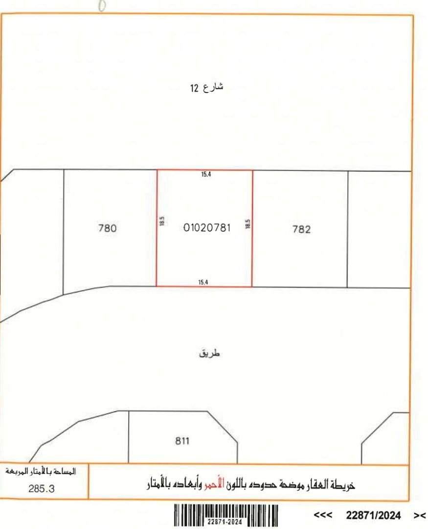 أرض سكنية للبيع في الحد بتصنيف RB (سكن خاص - ب) تقع على شارع واحد. مساحة أرض 285.3 متر مربع, بسعر 27.00د.ب لكل قدم مربع , السعر الإجمالي 82,916.190د.ب