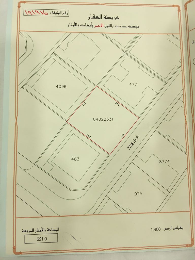 أرض سكنية للبيع في الديه بتصنيف RA (سكن خاص - أ). مساحة أرض 521 متر مربع, بسعر 26.00د.ب لكل قدم مربع , السعر الإجمالي 145,809.040د.ب