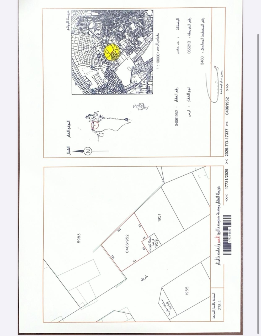 أرض سكنية للبيع في الديه بتصنيف RB (سكن خاص - ب). مساحة أرض 278.4 متر مربع, بسعر 27.54د.ب لكل قدم مربع , السعر الإجمالي 82,529.118د.ب