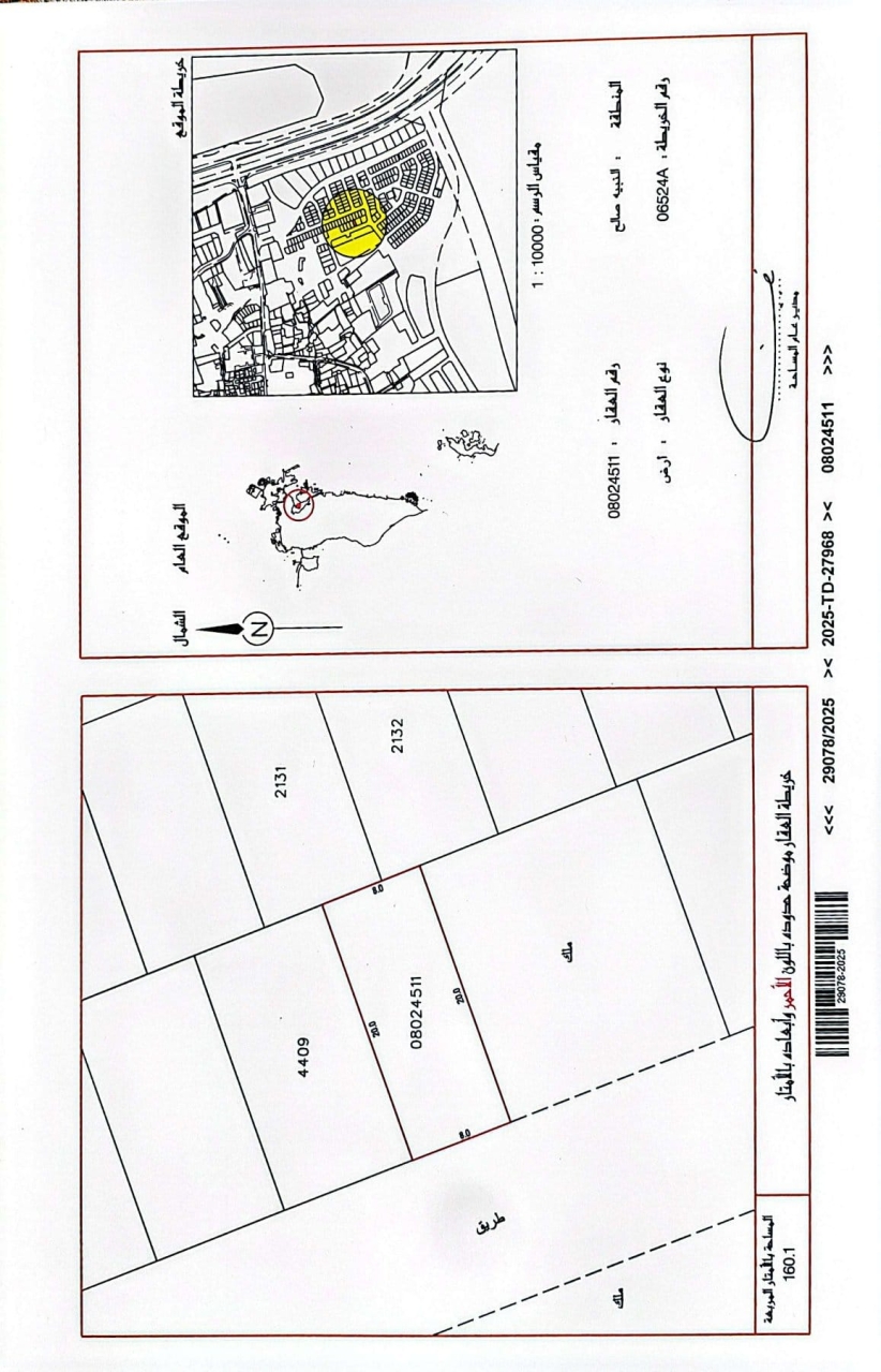 أرض سكنية للبيع في النبيه صالح بتصنيف RHA (سكن متصل - أ) تقع على شارع واحد. مساحة أرض 160.1 متر مربع, بسعر 34.90د.ب لكل قدم مربع , السعر الإجمالي 60,143.868د.ب