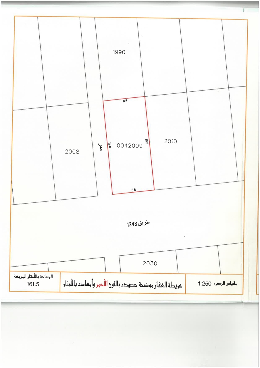 أرض سكنية للبيع في الهملة بتصنيف RHA (سكن متصل - أ) تقع على شارع واحد. مساحة أرض 161.50 متر مربع, بسعر 27.90د.ب لكل قدم مربع , السعر الإجمالي 48,499.343د.ب