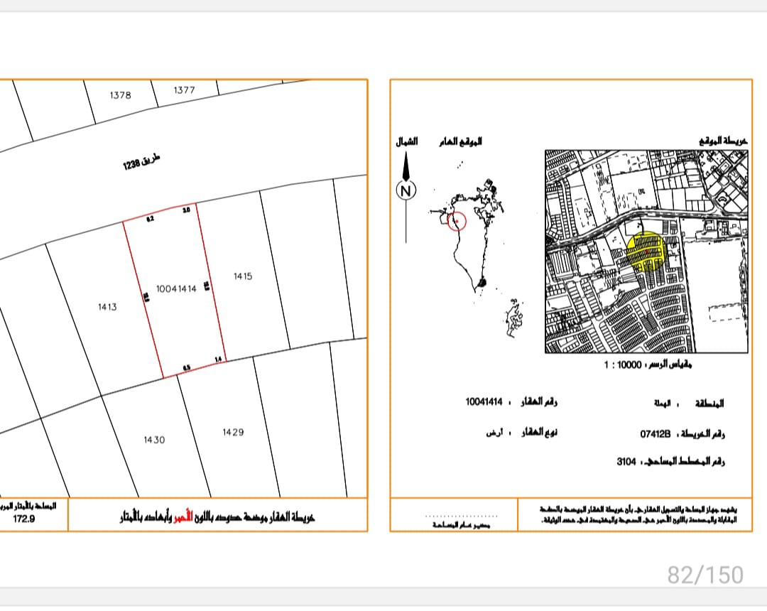 أرض سكنية للبيع في الهملة بتصنيف RHA (سكن متصل - أ) تقع على شارع واحد. مساحة أرض 172.9 متر مربع, بسعر 27.00د.ب لكل قدم مربع , السعر الإجمالي 50,249.700د.ب
