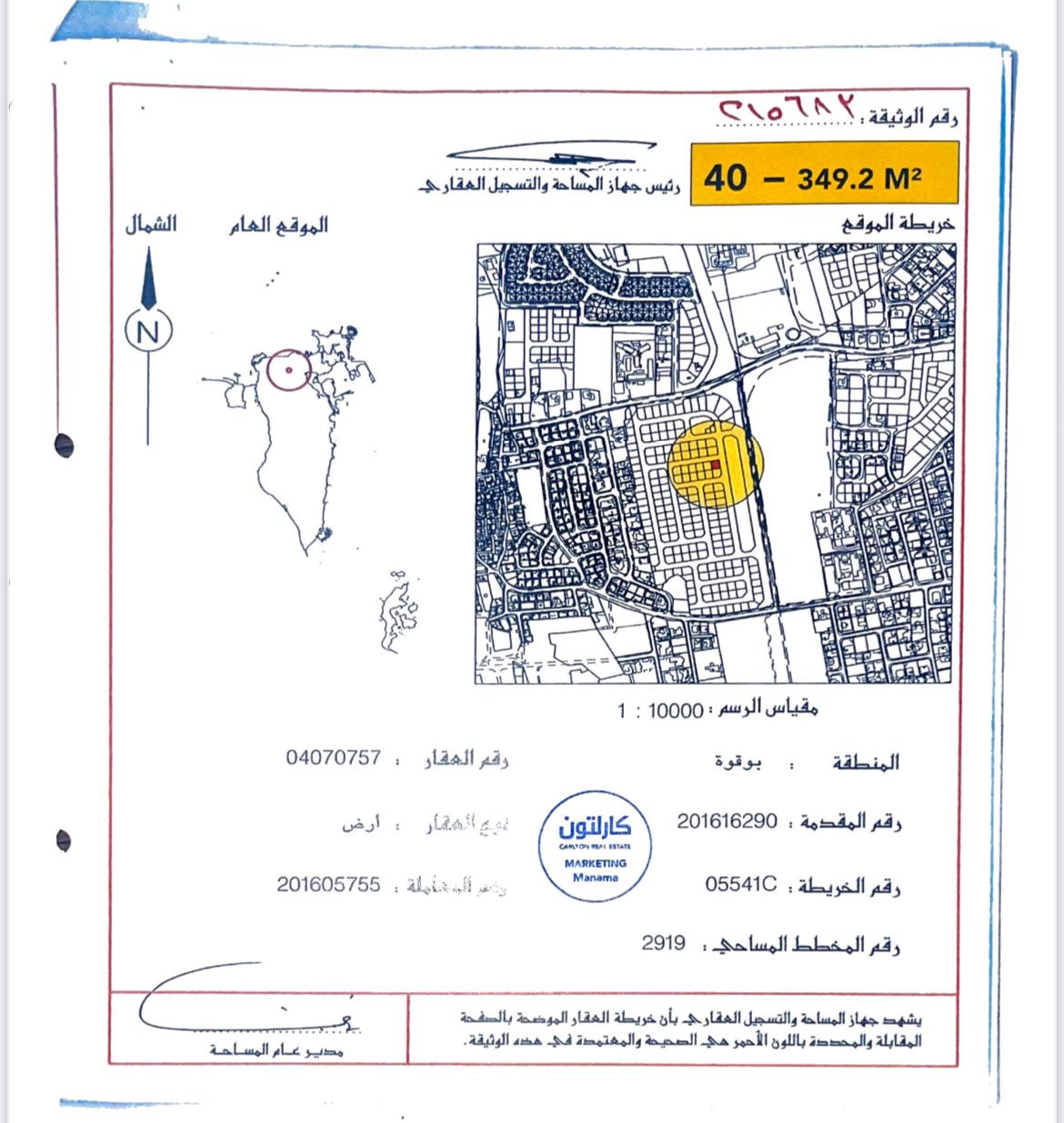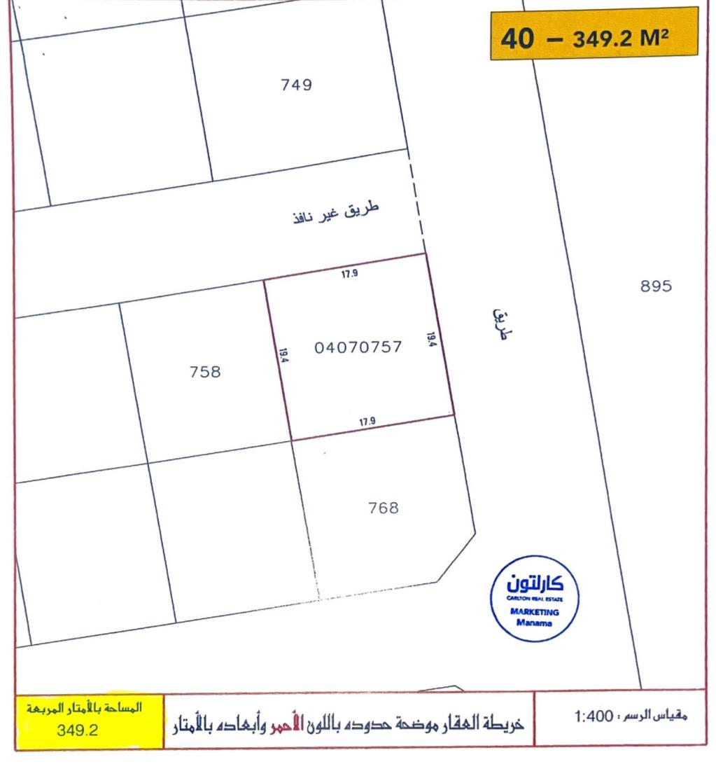 أرض سكنية للبيع في بو قوة بتصنيف RA (سكن خاص - أ) تقع على شارع واحد. مساحة أرض 349.2 متر مربع, بسعر 33.00د.ب لكل قدم مربع , السعر الإجمالي 124,040.070د.ب