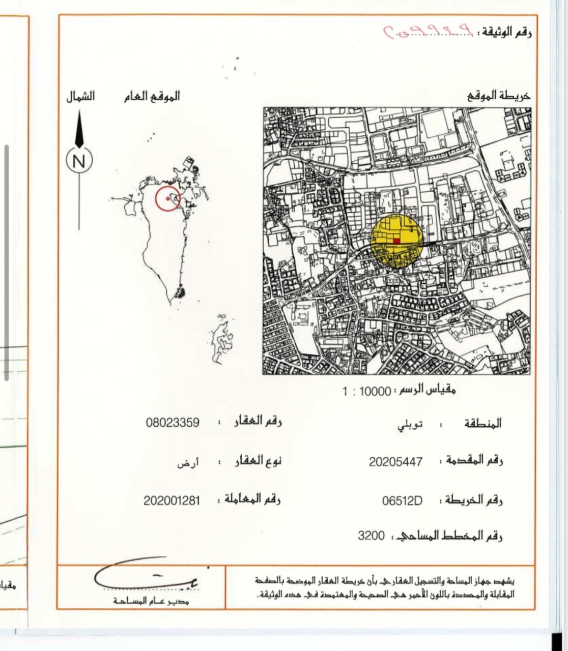 أرض سكنية للبيع في توبلي بتصنيف RB (سكن خاص - ب). مساحة أرض 446.8 متر مربع, بسعر 27.00د.ب لكل قدم مربع , السعر الإجمالي 129,852.720د.ب