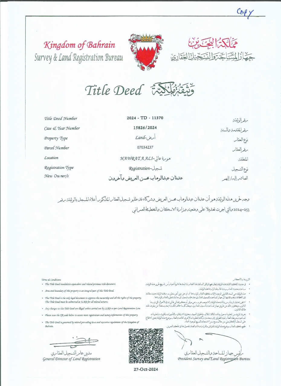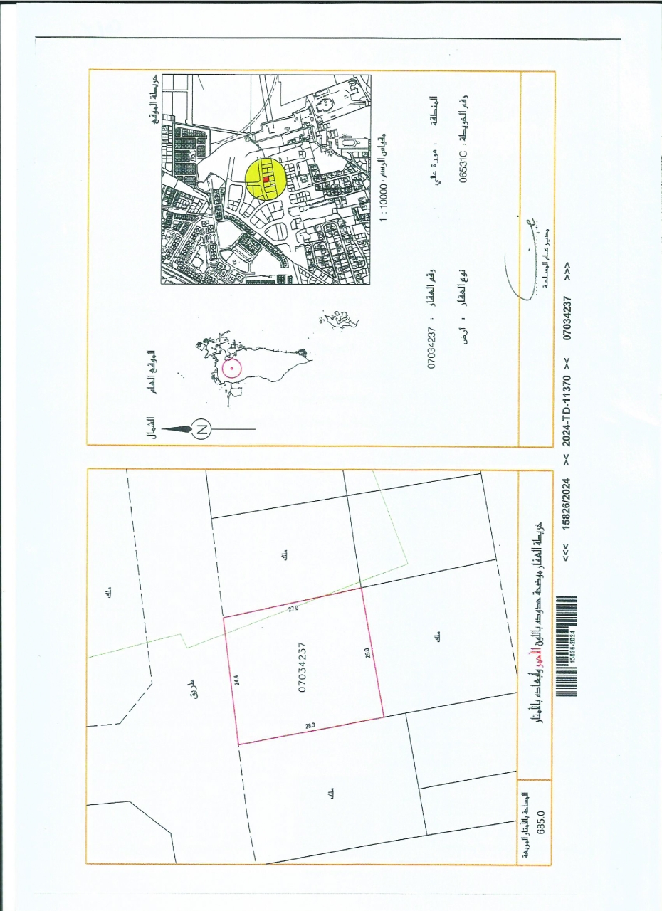 أرض سكنية للبيع في هورة عالي بتصنيف RA (سكن خاص - أ). مساحة أرض 685 متر مربع, بسعر 20.00د.ب لكل قدم مربع , السعر الإجمالي 147,466.800د.ب